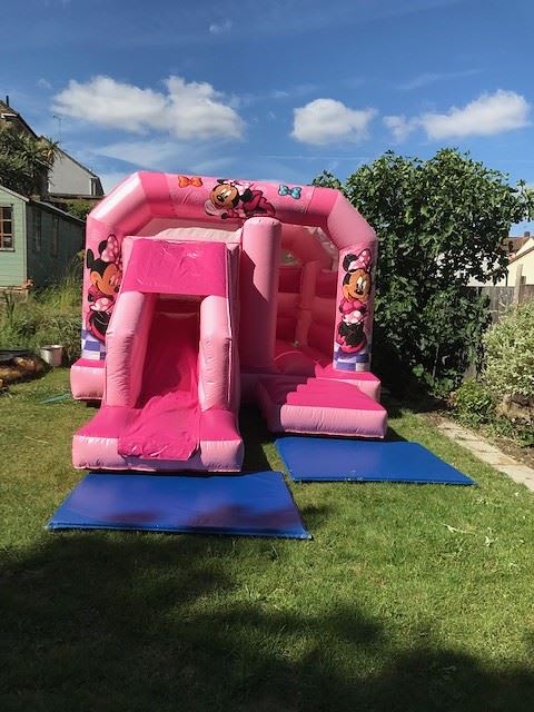 This is our Mrs Mouse Pink Front Slide Bouncy Castle..