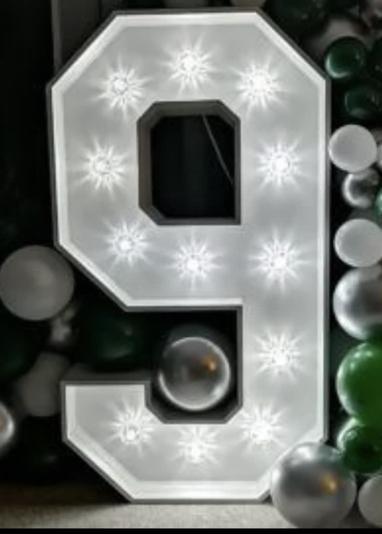 Number Nine is perfect for 9th Birthday Parties, we can also supply with Pink Lights or Blue Lights perfect for your prince or princess on their Special Day.
